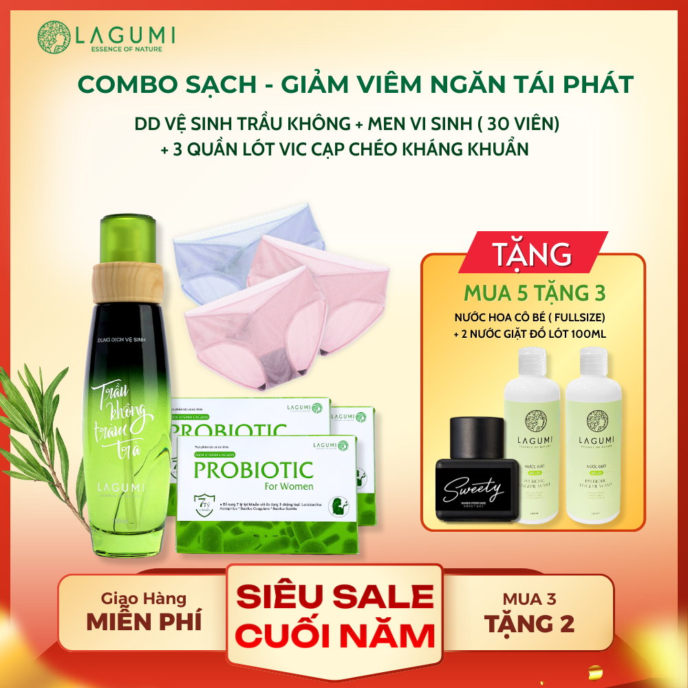 COMBO NGỪA VIÊM NHIỄM TÁI ĐI TÁI LẠI (1 DDVS + 3 Men vi sinh + 3 quần VIC kháng khuẩn)