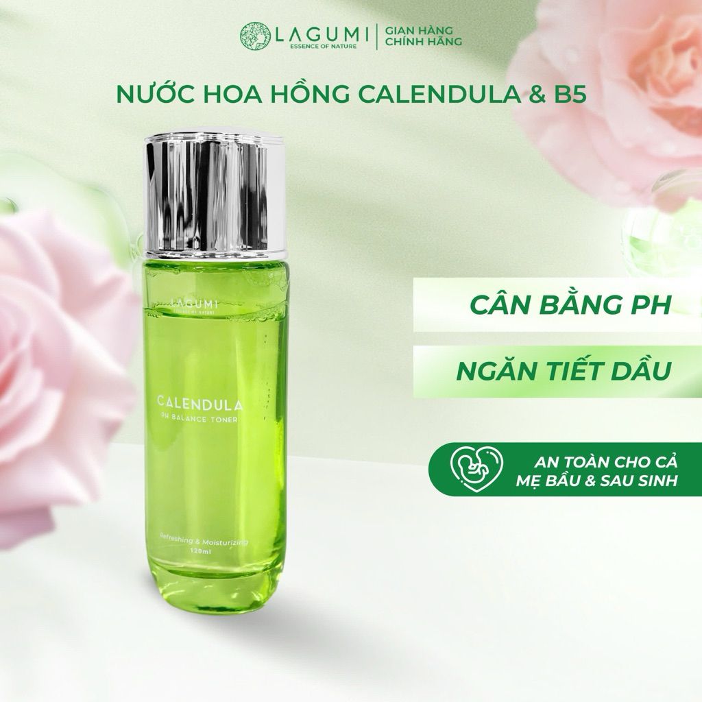 Nước hoa hồng cân bằng pH làm mềm và dịu da Lagumi Calendula 120ml với thành phần chính từ nước khoáng thiên nhiên, không chứa các thành phần độc hại, làm dịu mát da và cân bằng độ pH, cấp ẩm cho da mềm mại. Nước hoa hồng Lagumi còn là giải pháp làm sạch sâu, ngăn sự tích tụ bã nhờn cùng dầu thừa và giảm thiểu tình trạng tắc nghẽn lỗ chân lông gây nên mụn. Sản phẩm an toàn, phù hợp cho những bạn có làn da dầu nhạy cảm, khó chọn Toner.