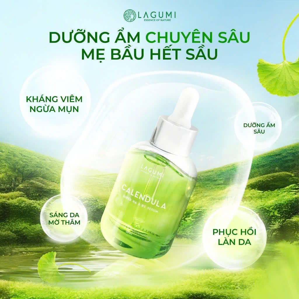 Serum dưỡng ẩm LAGUMI Calendula là giải pháp chăm da lý tưởng cho làn da dầu mụn và nhạy cảm, với công thức đột phá kết hợp HA đa phân tử – Vitamin B5 – Niacinamide cùng chiết xuất Lô hội và Dưa leo. Sản phẩm giúp cấp ẩm sâu đa tầng, làm dịu và phục hồi da tổn thương, đồng thời hỗ trợ dưỡng sáng – mờ thâm sau mụn. Kết cấu lỏng nhẹ, thẩm thấu nhanh, không nhờn rít, không bết dính – phù hợp với mọi loại da, đặc biệt là da mụn, da nhạy cảm, mẹ bầu và phụ nữ sau sinh